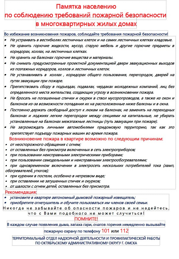 ПАМЯТКА ПО ПОЖАРНОЙ БЕЗОПАСНОСТИ